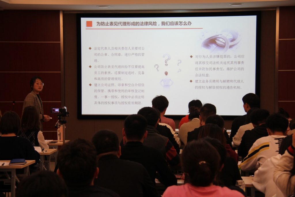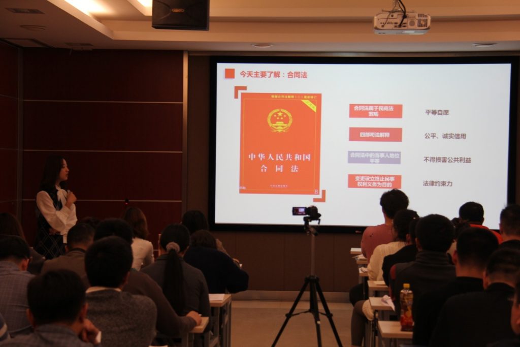 Keynote speaker Li Jing specified ” Common knowledge of contract law and contract risk prevention ” as the topic, and communicated well with everyone from different legal aspects, including basic legal knowledge, contract law, main contract terms, contract risk prevention, statute of limitations, evidence types and evidence collection. Meanwhile, a large number of practical cases and jurisprudence have been explained as supplements to make it easier for employees to understand.